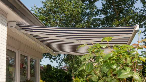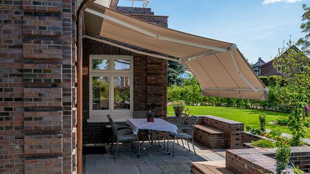 Eine Gelenkarmmarkise eignet sich perfekt für die heimische Terrasse oder den Balkon. Sie lässt sich leicht ein- und ausfahren und kann designtechnisch an Ihr zu Hause angepasst werden.